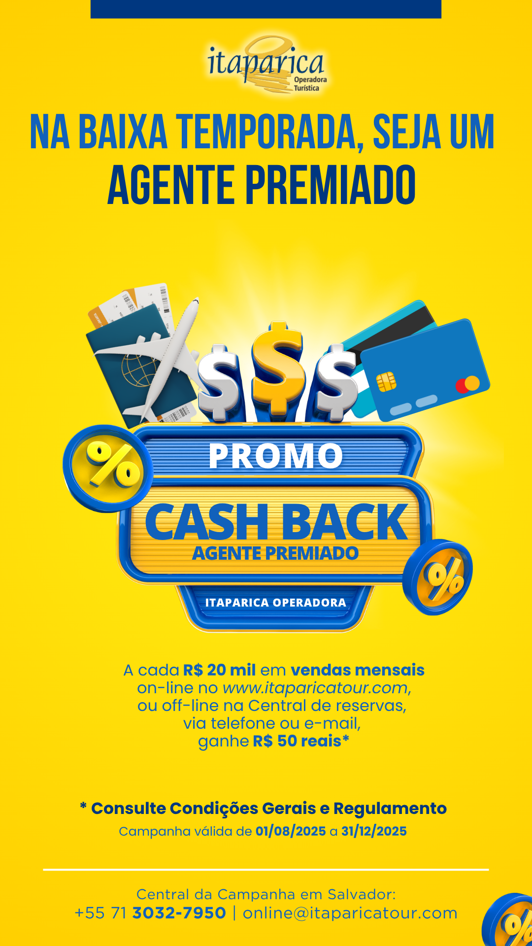 Com 42 anos de experiência no turismo do Brasil, a Itaparica Tour é sinônimo de confiança, inovação e parceria com o agente de viagens.