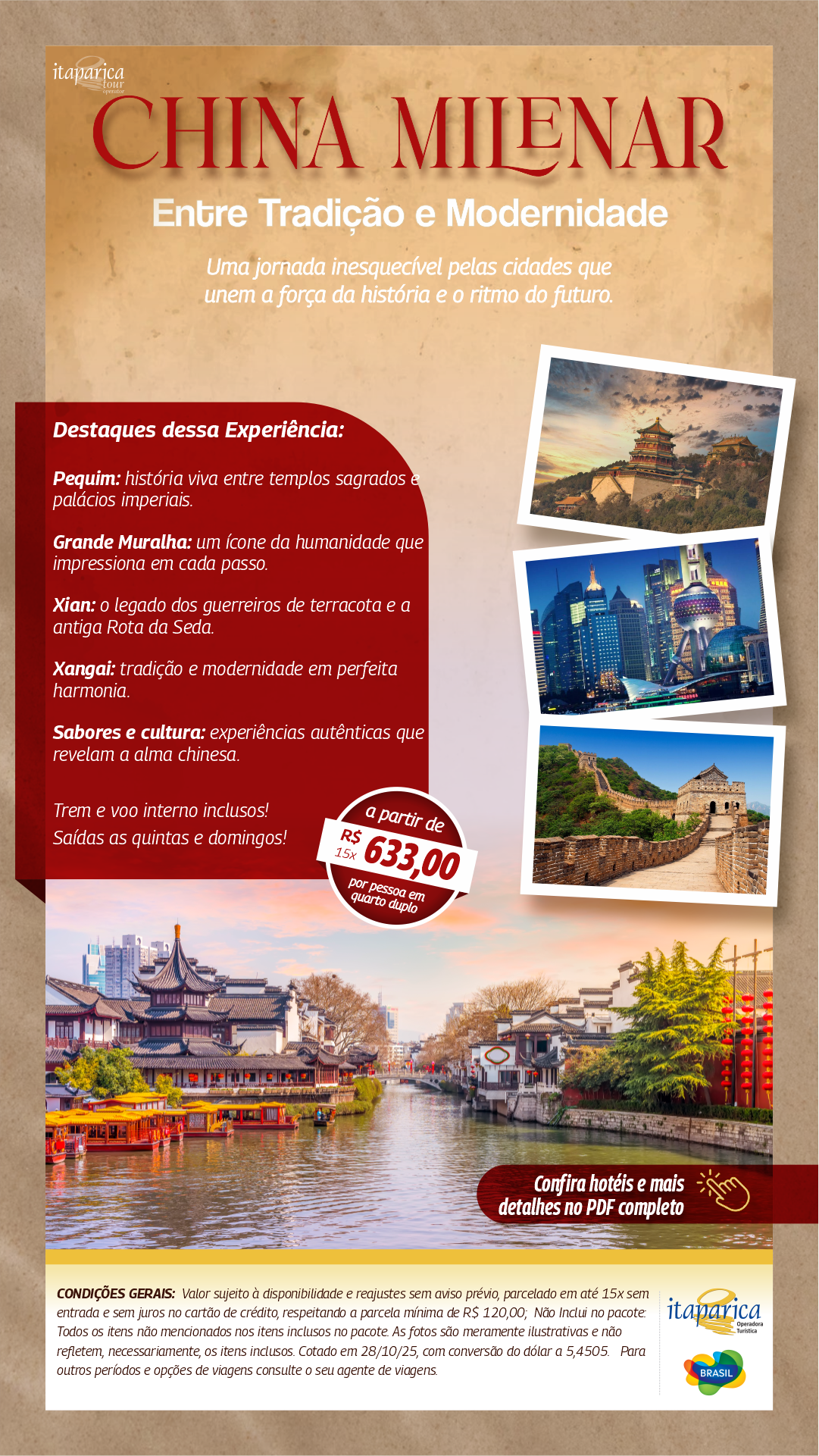 Este roteiro entrega uma experiência completa, combinando história, modernidade, deslocamentos internos já organizados e cidades icônicas — um produto fácil de vender e ideal para clientes que buscam uma viagem marcante com tudo estruturado.