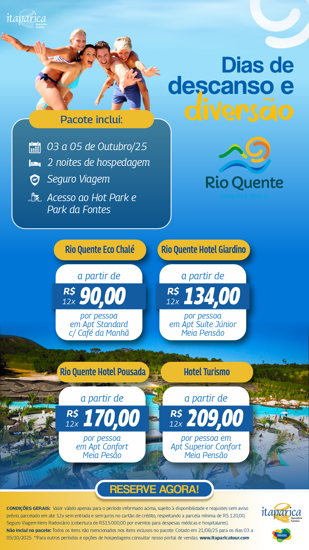 Com hospedagem prática, acesso ao Hot Park e Park das Fontes, além de seguro viagem incluso, esse é um produto completo e fácil de oferecer aos seus clientes.