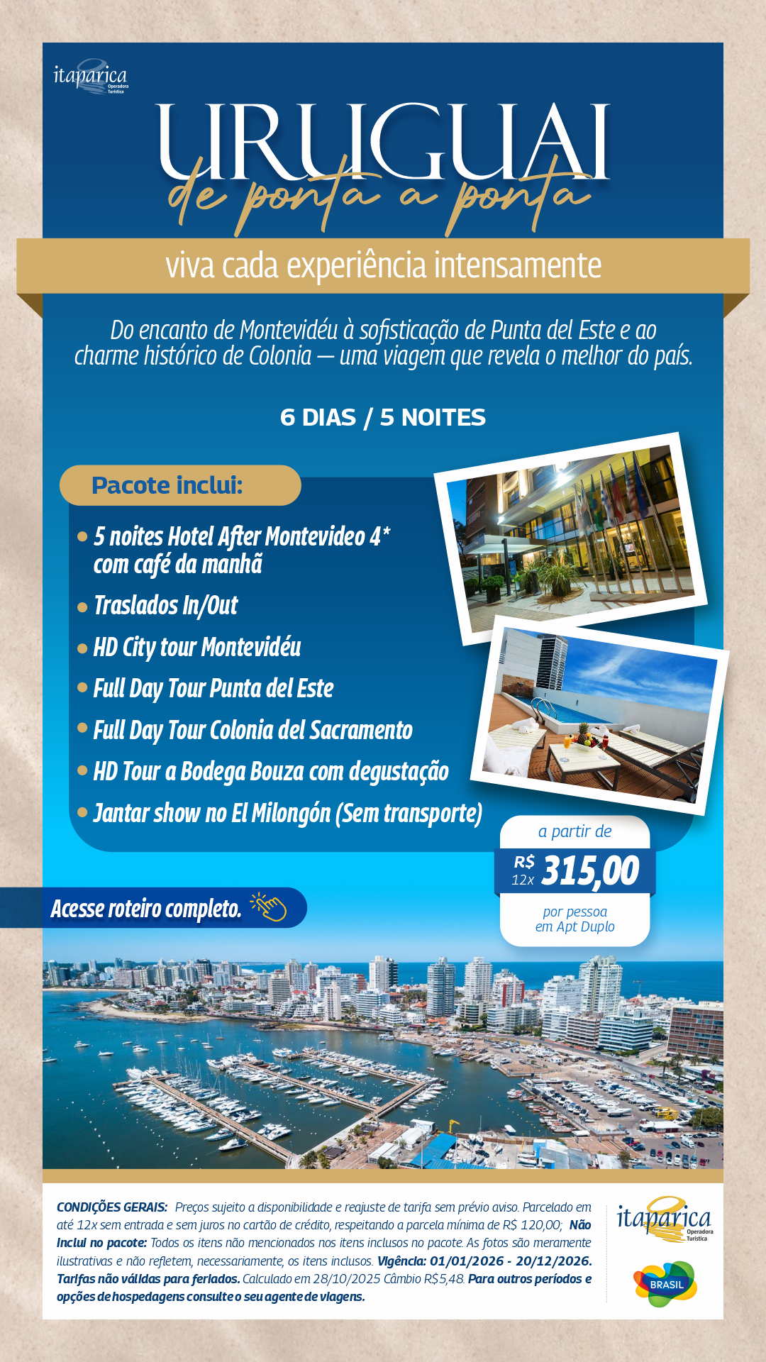 Um roteiro que conecta o charme histórico, a elegância urbana e os cenários à beira-mar, revelando o Uruguai em sua essência mais autêntica e encantadora.